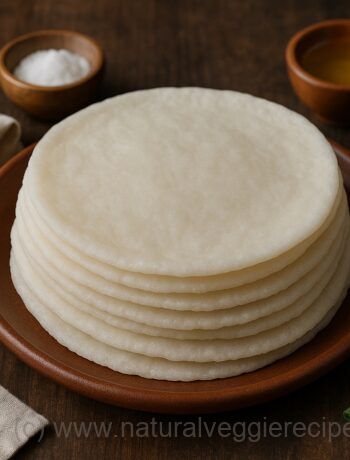 For spreading the rice dough, place 1 ball between 2 greased plastic sheets and spread evenly with hand, applying gentle pressure, until it is flat and round, about the size of your palm and slightly thick.